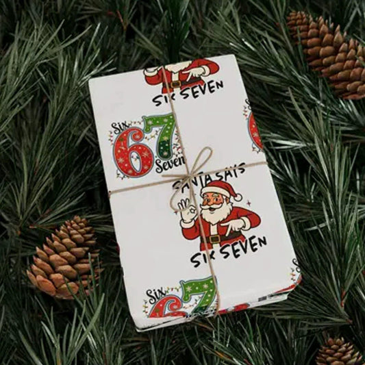 67 Meme Santa Christmas Gift Wrap, Funny Six Seven 6-7 Meme Xmas Gift Wrapping Paper - Ideal for Christmas, Birthdays, Celebrations & Holidays